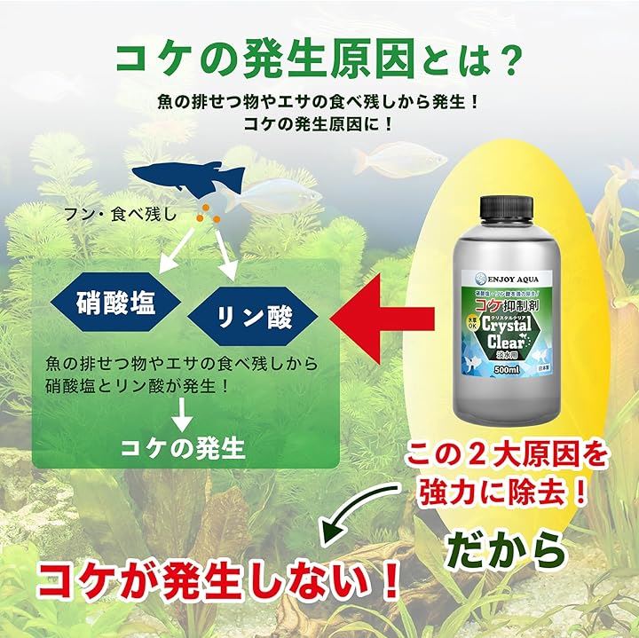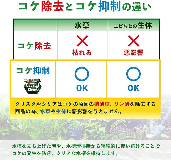 硝酸塩とリン酸というコケの2大要素を少なくするのが特徴です。