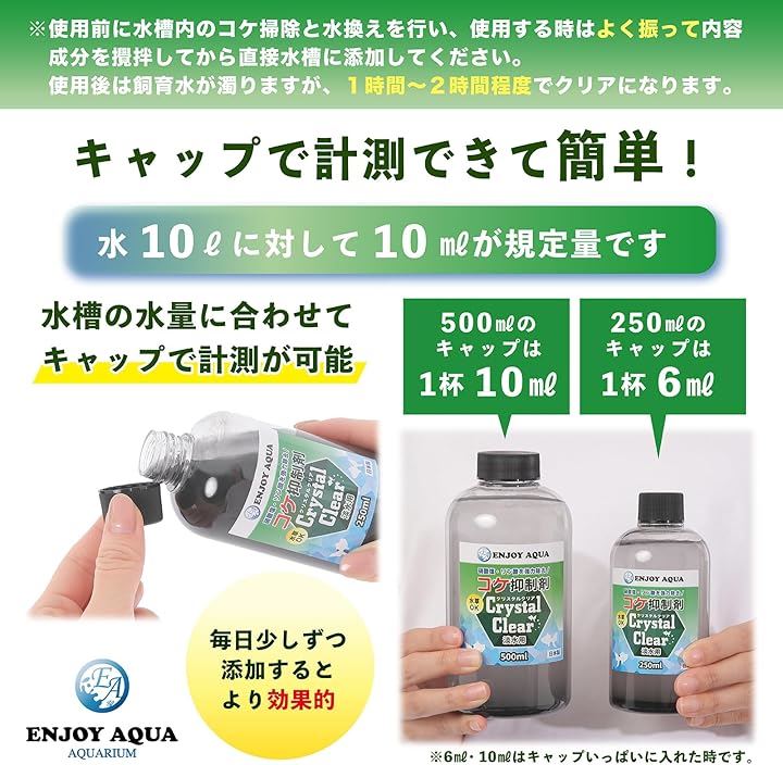 水換え時には交換水に対して規定量を添付 毎日少しずつ添加するとより効果的です。