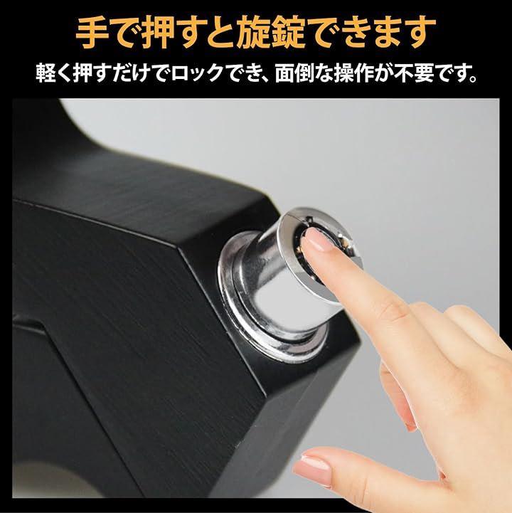 「バイクロック 保護セキュリティ」ブレーキとグリップを挟んでロックし、一度固定してしまえば、専用鍵がないと外せない仕様となっており、盗難対策に非常に効果的です。
