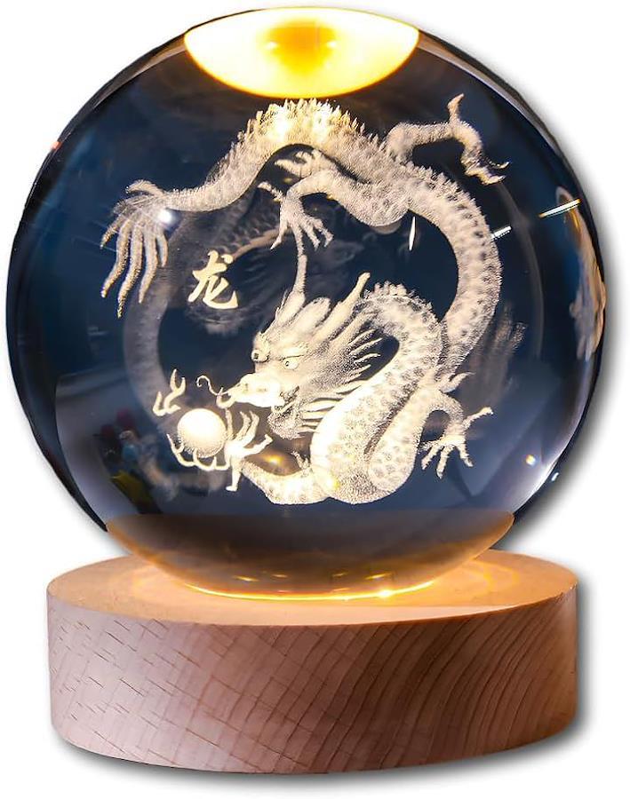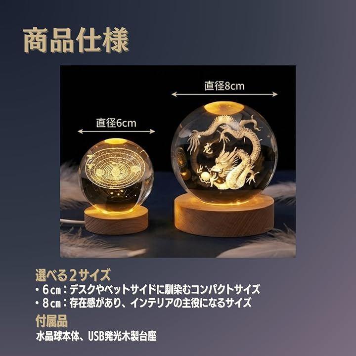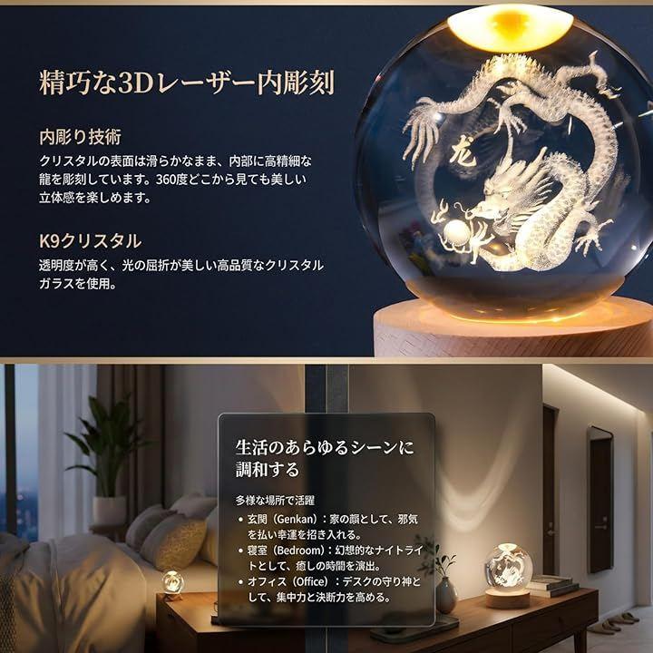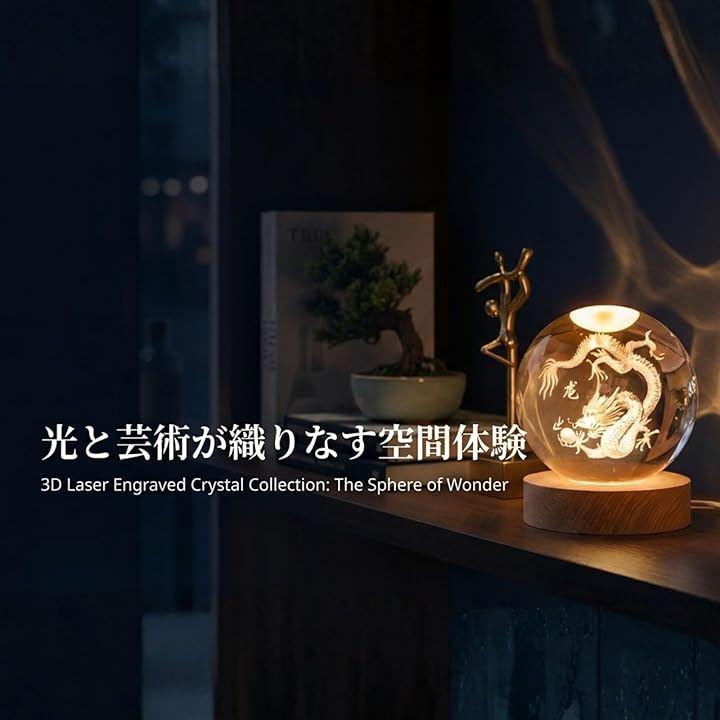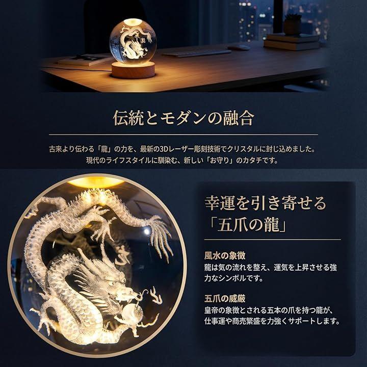 「幻想的なライトアップ」 付属のUSB給電台座により、内部の龍が美しく浮かび上がります。