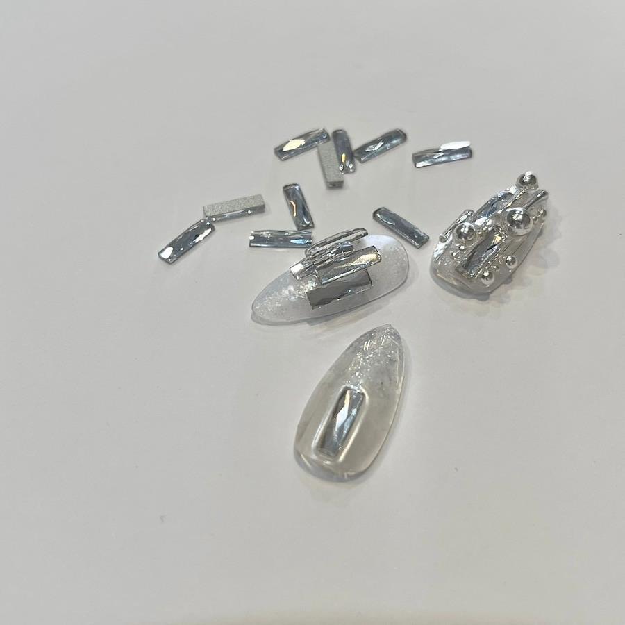ゴールド、シルバーそれぞれ約6cmが入っています。デザインのアクセントとして是非お使いください。デザインを邪魔しない使いやすいカラーです。カットをすると場所によっては崩れてしまうので画像のように容器にキープしておくと使いやすいです。