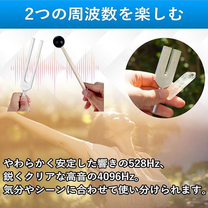 528Hzと4096Hzの2種類の音叉を使い分けることで、リラックスや意識集中など幅広い目的に対応できます。