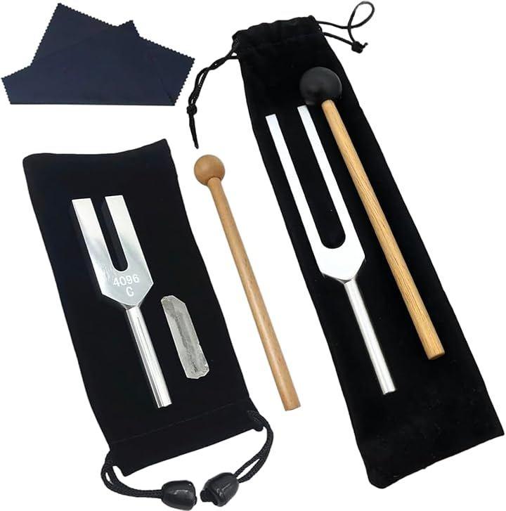Crystal Tuner Tuning Fork 528Hz 4096Hz Set for Healing and Meditation, Includes Quartz Mallet and Pouch