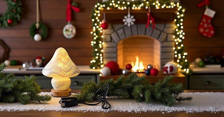 ライトを点灯すれば、寝室はたちまちおとぎ話の森に。キノコの質感を模したデザインで、癒しの空間を演出します。