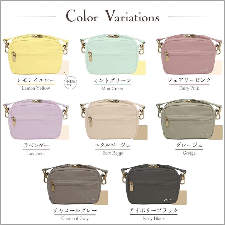 エクルベージュ、チャコールグレー、グレージュ、アイボリーブラック、ラベンダー、ミントグリーン、レモンイエロー、フェアリーピンクの8色からお選びいただけます。