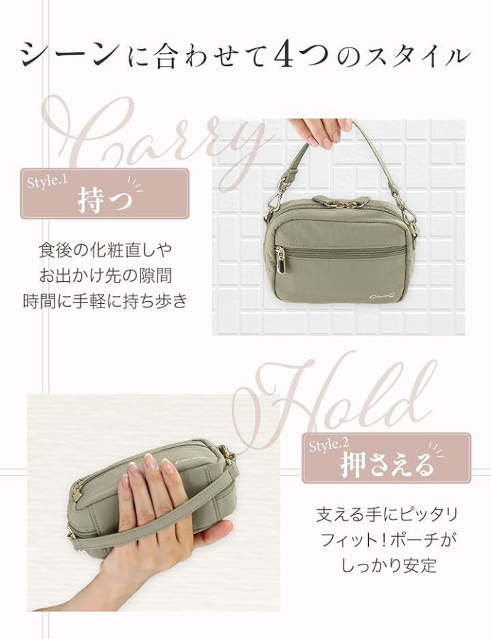 化粧ポーチとしてはもちろんですが、ガジェットポーチ、トラベルポーチ、コンパクトカメラポーチ、スマホポーチなど、様々なシーンでお使いいただけます。