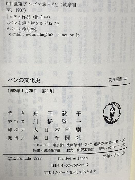 Cultural History of Bread (Asahi Sensho 592) Asahi Shimbun Publications Eiko Funada
