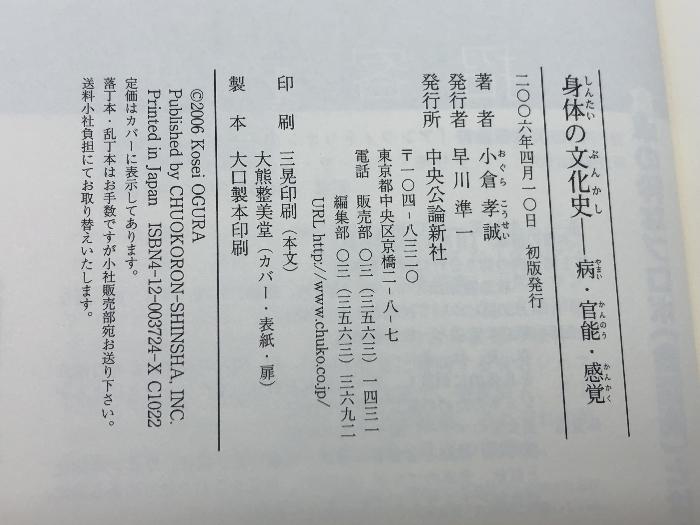 商品名:身体の文化史: 病・官能・感覚 中央公論新社 小倉 孝誠