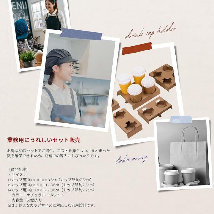 「商品仕様」 ・サイズ:(1カップ用) 約10 x 10 x 3.6cm(カップ部 約7.5cm)/ (2カップ用) 約19.5 x 10 x 3.6cm(カップ部 約7.5cm)/ (4カップ用) 約21.8 x 17 x 3.6cm(カップ部 約7.2cm) ・カラー:ナチュラル/ホワイト ・内容量:50個入り *さまざまなカップサイズに対応した汎用設計です。