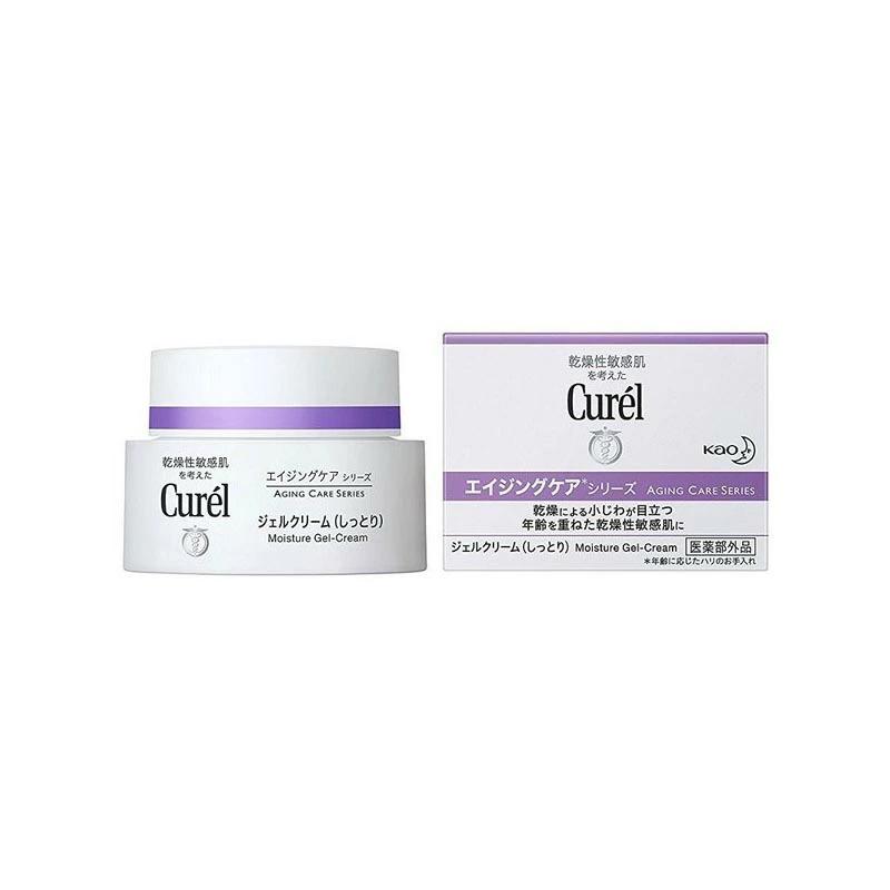 【キュレル エイジングケアシリーズ ジェルクリームの商品詳細】●潤い成分(セラミド機能成分*、ユーカリエキス、アスナロエキス)配合。肌に潤いを与えてしっかり留め、ハリのある潤い肌に保つ●乾燥による小じわを目立たなくする●肌のハリ向上成分(保湿剤:ショウキョウエキス、グリセリン)配合●肌荒れを防ぐ(消炎剤配合)●無香料・無着色・アルコールフリー(エチルアルコール無添加)●しっとり*ヘキサデシロキシPGヒドロキシエチルヘキサデカナミド【販売名】CureLジェルクリームAa【使用方法】・化粧水の後にお使いください。・適量(直径約2cm:指の第一関節でひとすくいする程度)をとり、 顔全体、カサつき・潤い不足等が気になる部分にやさしくなじませます。【成分】アラントイン*、水、グリセリン、BG、PEG1540、POEメチルグルコシド、ヘキサデシロキシPGヒドロキシエチルヘキサデカナミド、アスナロエキス、ジメチコン、水溶性ショウキョウエキス(K)、ユーカリエキス、セタノール、グリセリン脂肪酸エステル、PEG20000、フィトスフィンゴシン、N.N-ジメチルアミノエチルメタクリル酸ジエチル硫酸塩・N.N-ジメチルアクリルアミド・ジメタクリル酸ポリエチレングリコール共重合体/PEG混合物、ステアリン酸POEソルビタン、L-グルタミン酸、パラベン*は「有効成分」無表示は「その他の成分」【注意事項】・傷、はれもの、湿疹等異常のある所には使わない・肌に異常が生じていないかよく注意して使う・肌に合わない時、使用中に赤み、はれ、かゆみ、刺激、色抜け(白斑等)や黒ずみ等の異常が出た時、直射日光があたって同様の異常が出た時は使用を中止し、皮フ科医へ相談する。使い続けると症状が悪化することがある・目に入らないよう注意し、入った時は、すぐに充分洗い流す。異常が残る場合は、眼科医に相談する・子供や認知症の方などの誤飲等を防ぐため、置き場所に注意する【原産国】日本