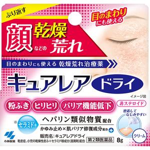 ■商品概要メーカー:小林製薬商品名:キュアレアドライ 8g医薬品分類:第2類医薬品区分:その他小児用区分:兼用薬剤形状:軟膏・クリーム内容量:8g商品概要:●バリア機能の低下により繰り返す、粉ふきやヒリヒリなどの顔のトラブルを肌の奥から改善する、乾燥荒れ治療薬です●ヘパリン類似物質で肌の奥から乾燥と炎症を治します●ガンマオリザノールの力で皮脂分泌促進し、ジフェンヒドラミンで炎症とかゆみを鎮めます●セラミド様成分(添加物:湿潤剤)配合でしっとりした使用感です●肌に浸透していく非ステロイドの顔用クリームです【使用期限】出荷時点で使用期限終了まで1年以上JANコード:4987072090435商品コード:075664183