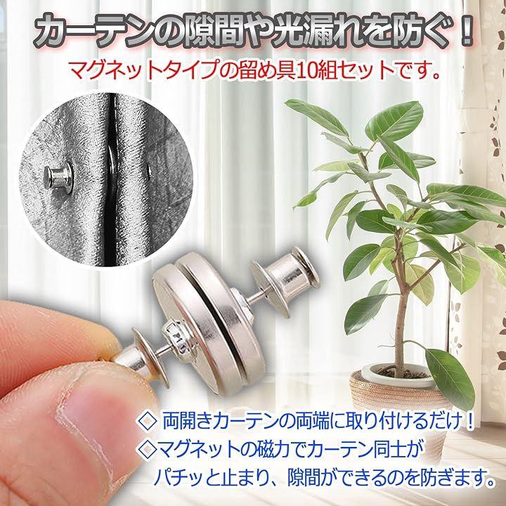 カーテンの隙間や光漏れを防ぐ。マグネットタイプの留め具10組セットです。