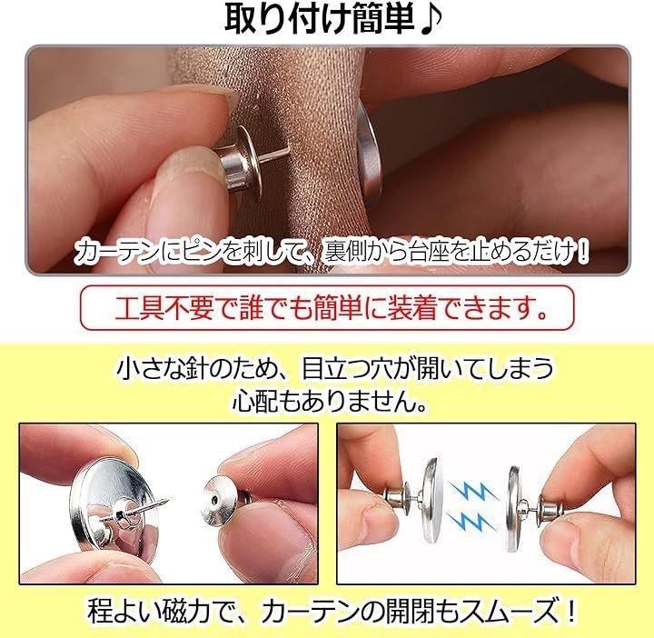 取り付け簡単*カーテンにピンを刺して、裏側から台座を止めるだけ。工具不要で誰でも簡単に装着できます。