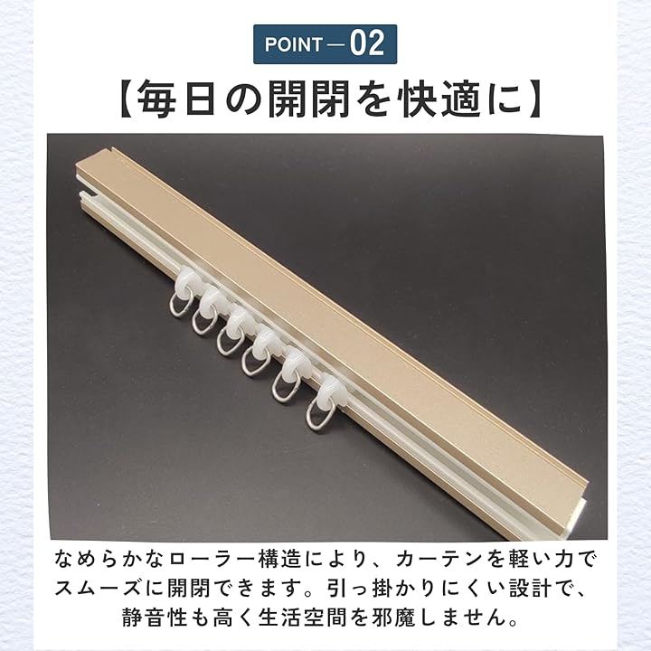「毎日の開閉を快適に」なめらかなローラー構造により、カーテンを軽い力でスムーズに開閉できます。