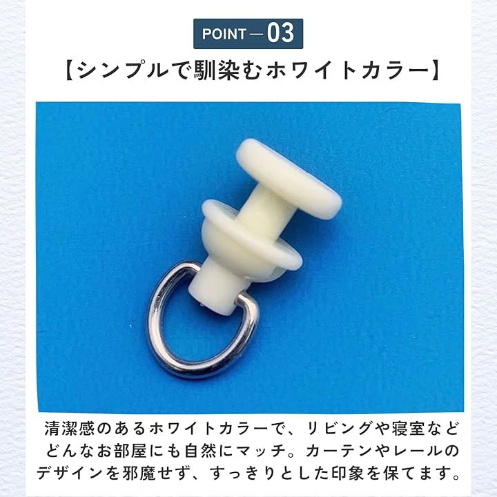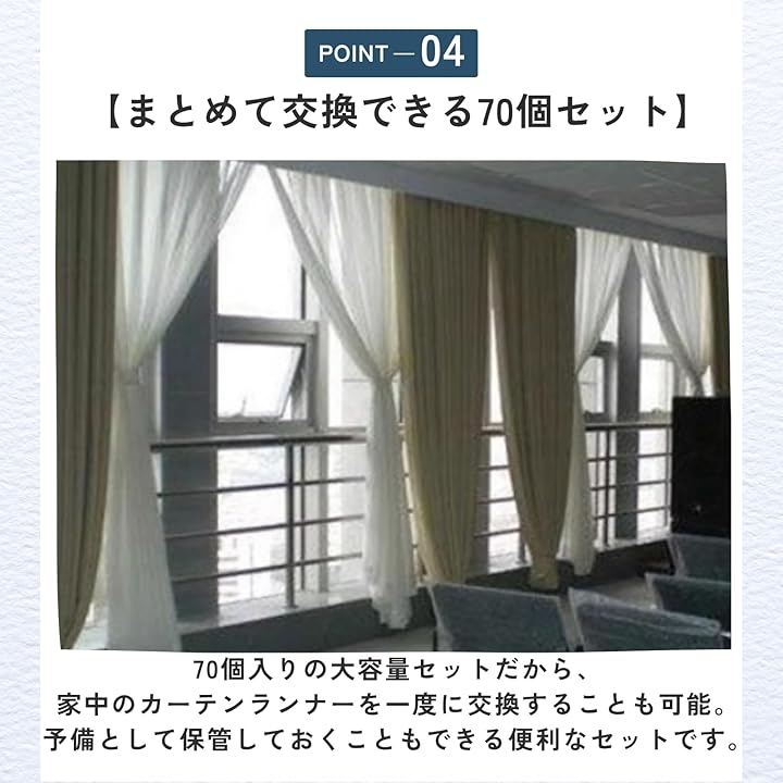 「まとめて交換できる70個セット」70個入りの大容量セットだから、家中のカーテンランナーを一度に交換することも可能。