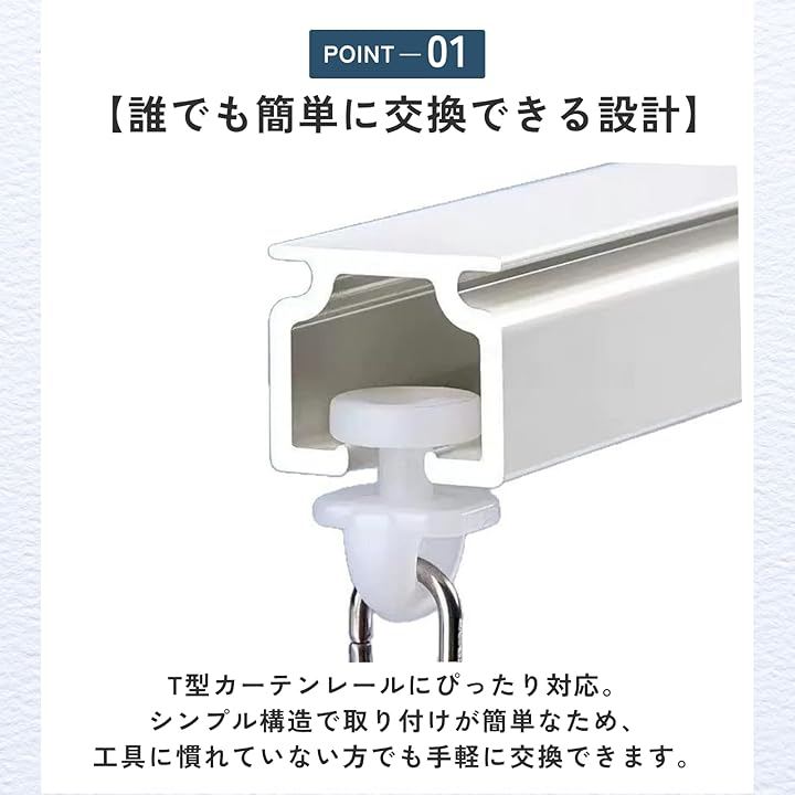 「誰でも簡単に交換できる設計」T型カーテンレールにぴったり対応。