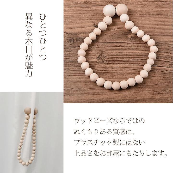 天然木の温もり:ナチュラルなウッドビーズを使用し、北欧風インテリアにぴったり。