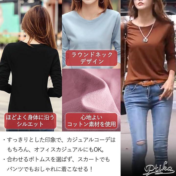 無地だからどんなアイテムとも相性抜群。ジャケットやニットのインナーとしてもおすすめです。