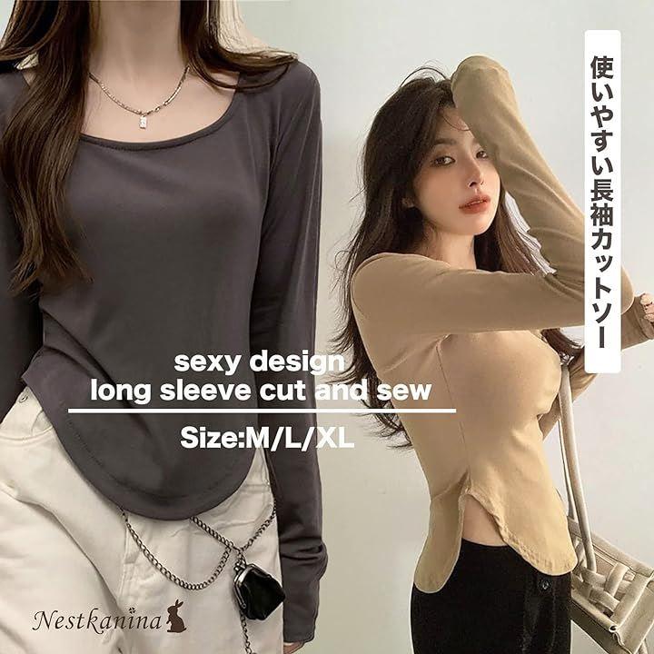 ・デコルテラインがセクシーなデザインの使いやすい長袖カットソーです。