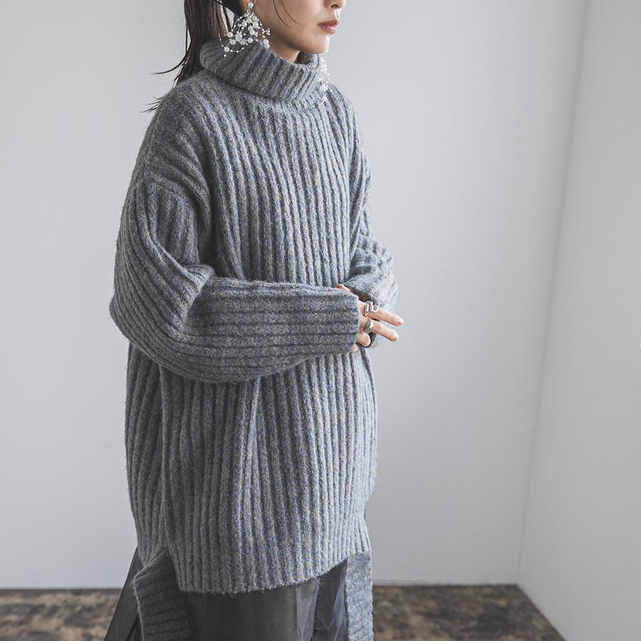 大注目メランジニットたっぷりのオーバーサイズと裾のカットオフデザインがアクセントに