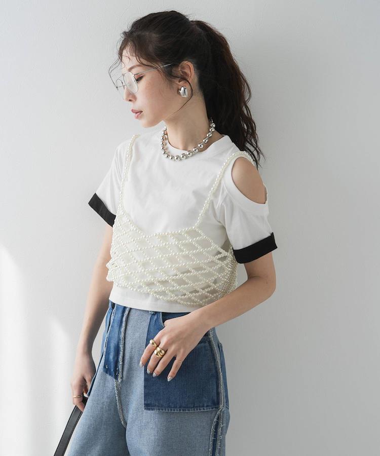 肩のカットオフデザインがpoint。