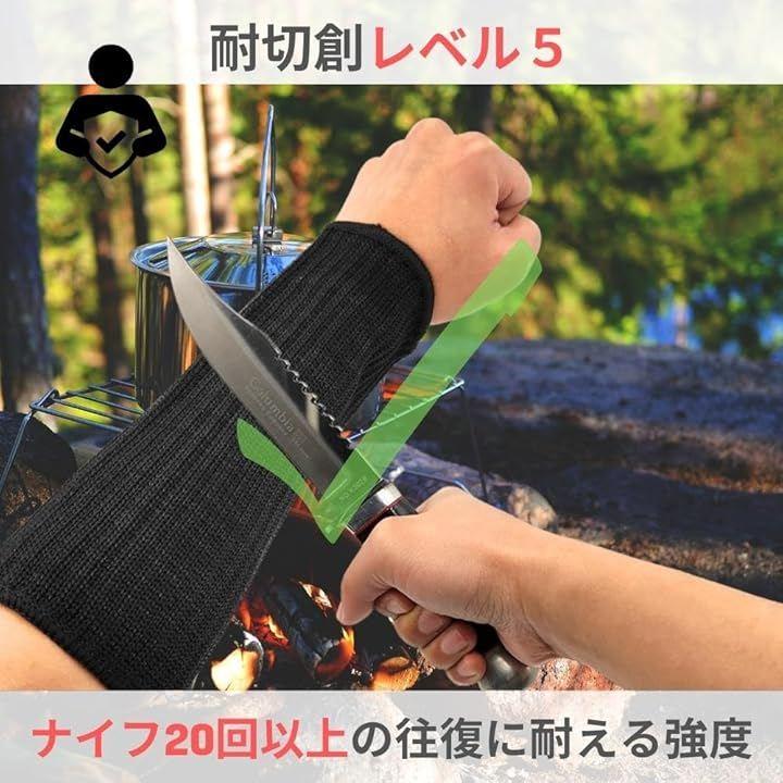 本製品は耐切創レベル5であり、ナイフ20回以上の往復に耐える強度を有しています。