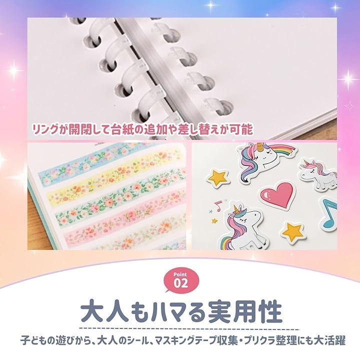 シールバインダーの中は貼ったシールが映える無地の剥離紙仕様で、マスキングテープや大きめのシールも切らずにきれいに貼れて女の子の遊びやコレクション用はもちろん、大人の趣味にも最適。
