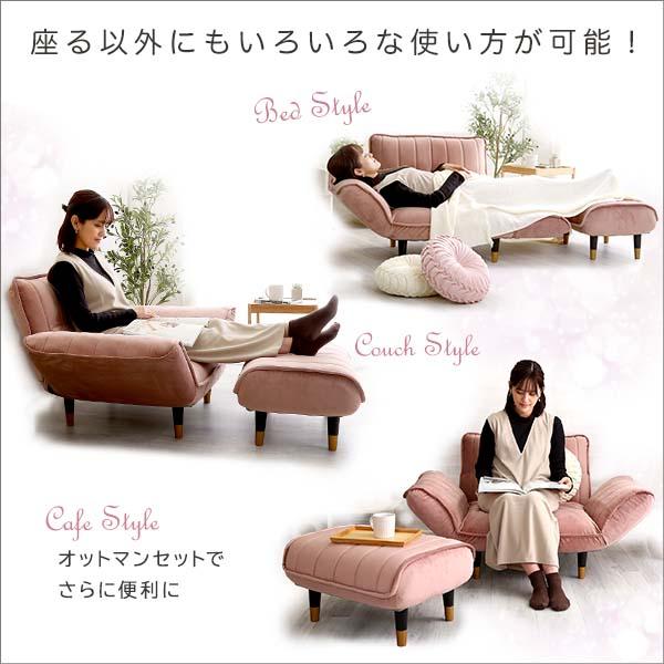 【素材】主材/張地:ポリエステル 100%構造部材:スチールパイプ、ポケットコイルスプリング中身:ウレタン【商品サイズ】1人掛け:W88-127×D73.5-108.5×H31.6-65cmオットマン:W58×D48×H31cm【商品重量】1人掛け:13kgオットマン:4s【梱包サイズ】1人掛け:W56×D40×H100cmオットマン:W72×D42×H16cm【梱包重量】1人掛け:14kgkgオットマン:5s【生産国】日本【カラー】ピンク&ブラック(PKBK)、ピンク&ブラウン(PKBR)、グリーン&ブラック(GEBK)、グリーン&ブラウン(GEBR)、グレー&ブラック(GYBK)、グレー&ブラウン(GYBR)、ベージュ&ブラック(BEBK)、ベージュ&ブラウン(BEBR)、ホワイト&ブラック(WHBK)、ホワイト&ブラウン(WHBR)【その他】完成品>> ベロアカウチソファ【1人掛け-単品-】はこちら >> ベロアカウチソファ【2人掛け-単品-】はこちら >> ベロアカウチソファ【オットマン】はこちら >> ベロアカウチソファ【2人掛け+オットマン】はこちら