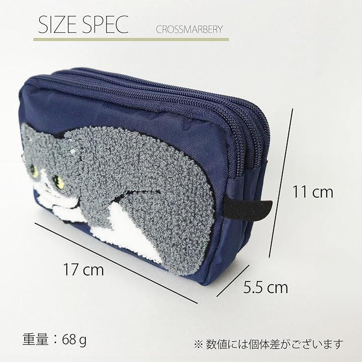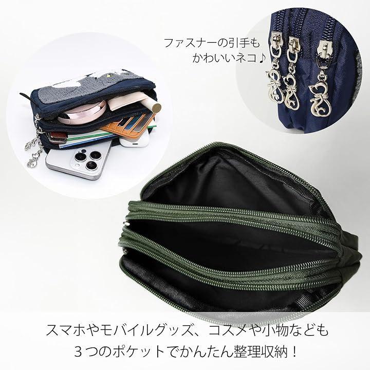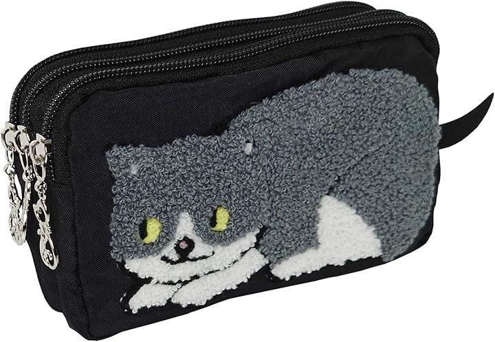 ふわふわ生地の可愛いネコに癒される3つのポケットがついた可愛くて機能的なポーチ。