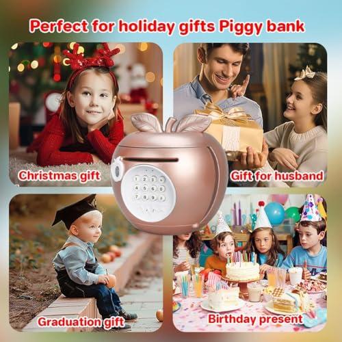 Cute Apple Shape Piggy Bank Electronic Piggy Bank Password Cash Coin Saving Pot Christmas New Year Kids Rose Gold