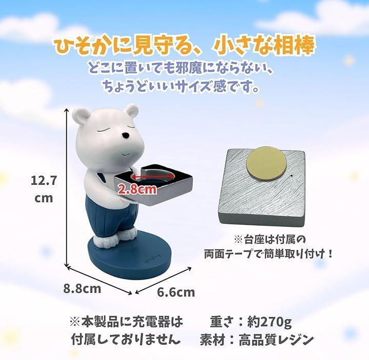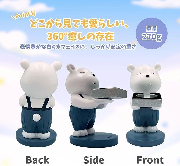 「どこから見ても愛らしい。360度癒しの存在感」 表情豊かな白くまフェイスと、背面のしっぽまで再現された細部へのこだわりが光るApple Watchスタンド。