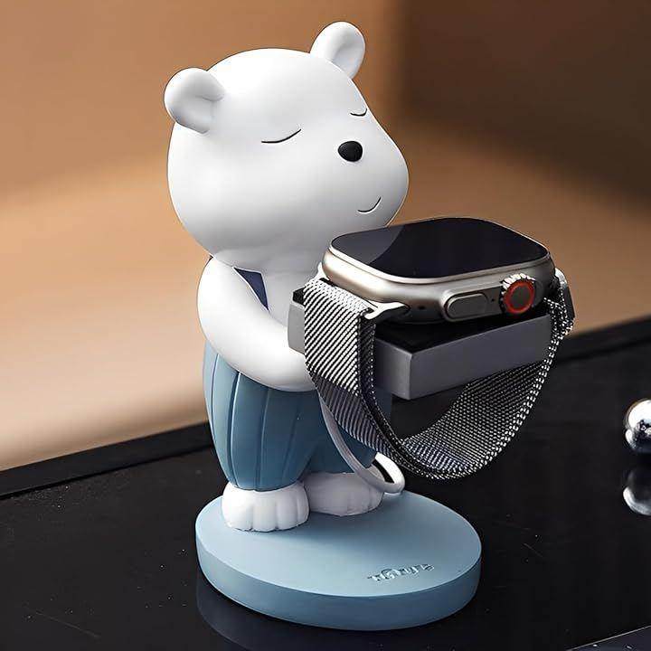 「癒しと実用性を兼ね備えたApple Watch専用スタンド」 ぽってりとしたほっぺと、ほのぼの笑顔が魅力の白くまスタンドが、あなたのApple Watchを優しくお預かり。