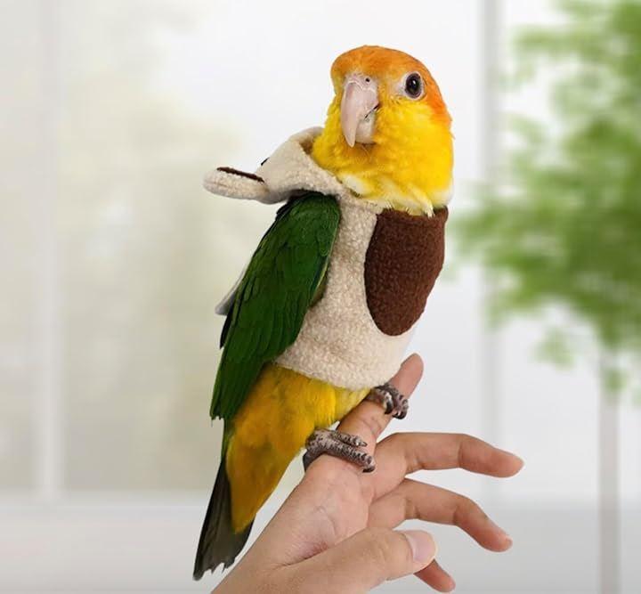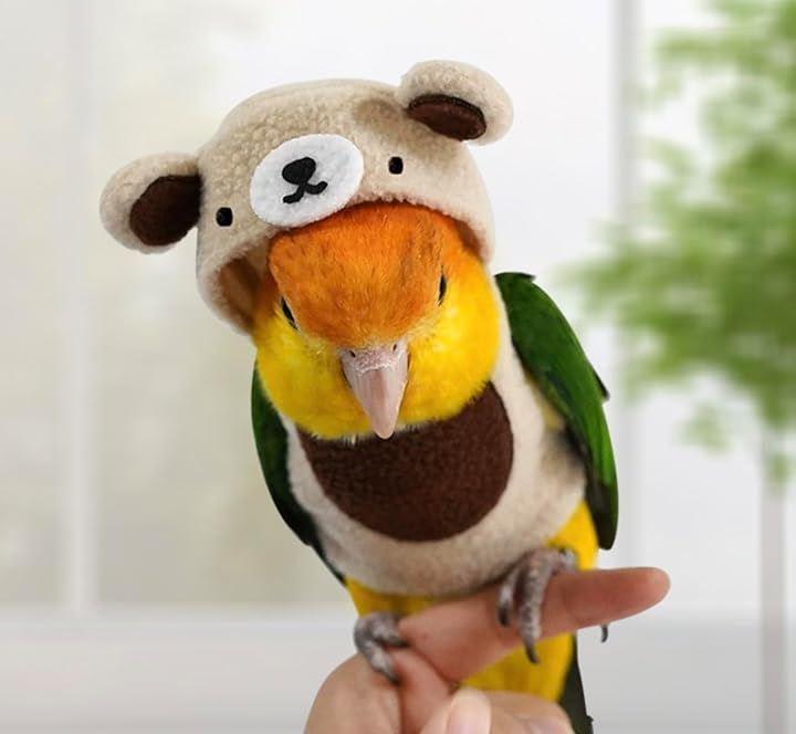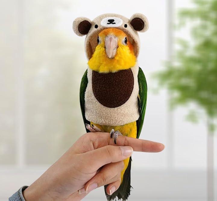 可愛さと防寒を両立。インコ用あったかペット服 ふわふわコットン素材で作られた、クマ耳フード付きの可愛いペット服。
