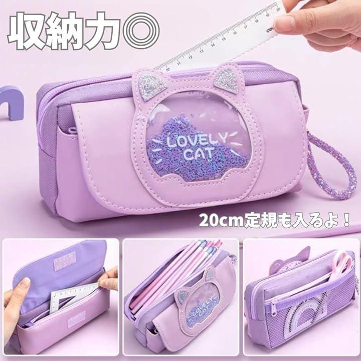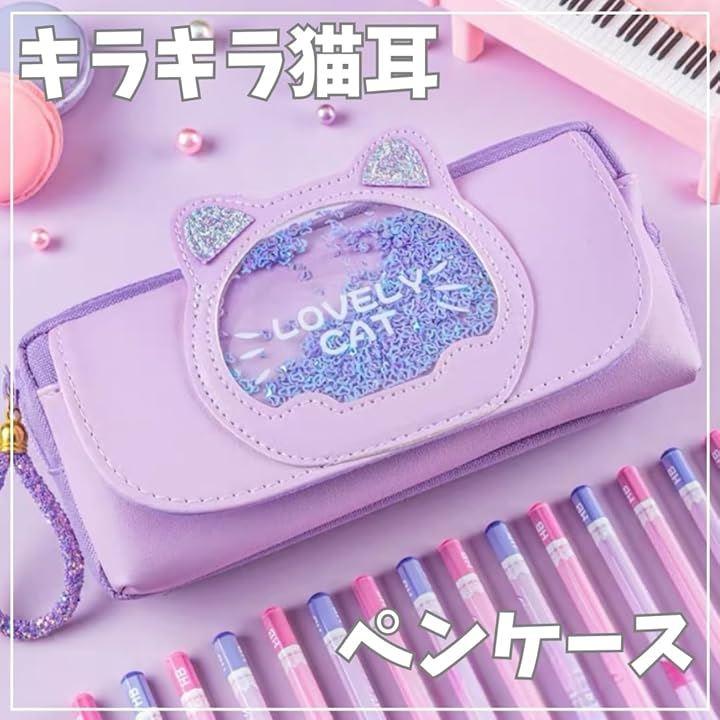 「猫のペンケース」 きらきら猫耳シルエットが目を引くペンケース。