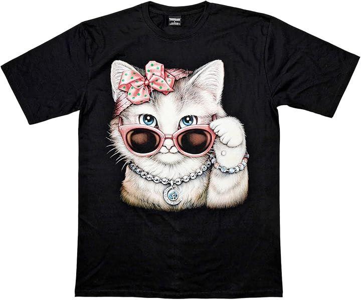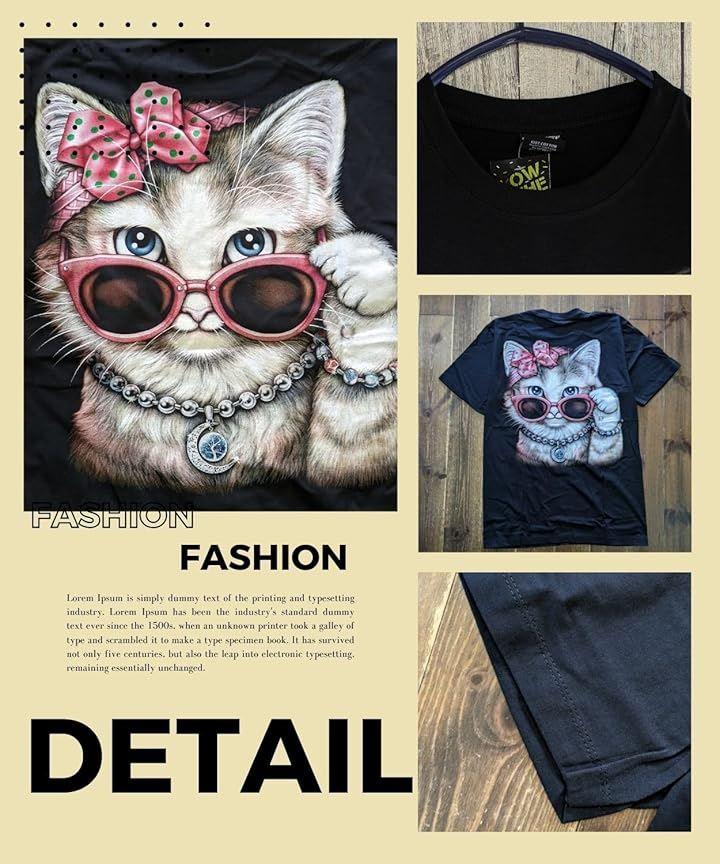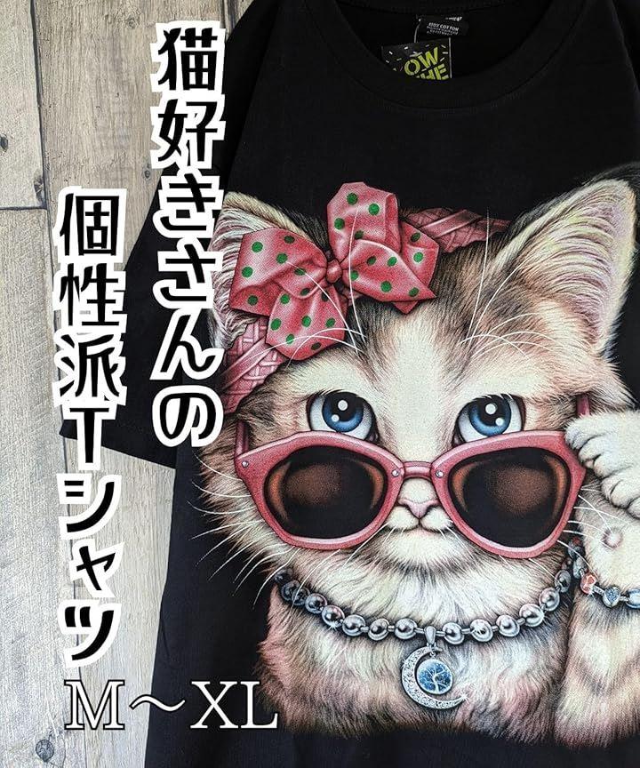 猫マニア、猫好きにはたまらないちょっとユニークな猫柄Tシャツ。