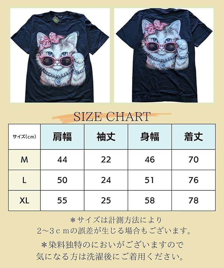 「サイズ」M 肩幅44/袖丈22/身幅46/着丈70、L 肩幅50/袖丈24/身幅51/着丈76、XL 肩幅55/袖丈25/身幅58/着丈78