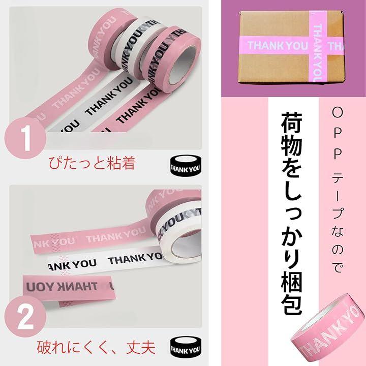 「可愛いピンクに白文字「THANK YOU」。感謝を伝えるOPPテープ」 「THANK YOU」の白文字が可愛いピンク色のOPPテープで、荷物の梱包やラッピングをより特別なものにしませんか。