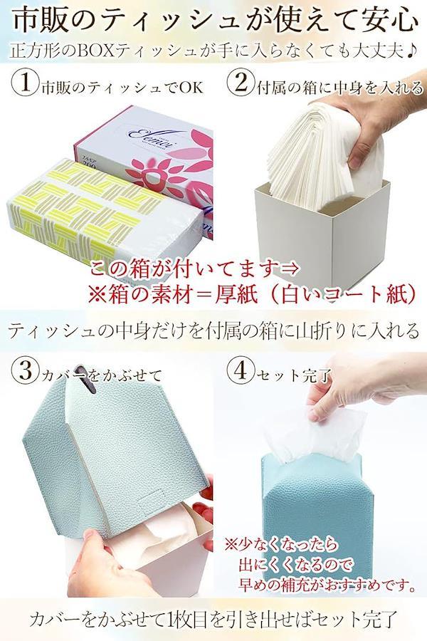 商品内容:ティッシュカバー=1枚、ティッシュペーパー詰め替え用の箱=1個(*この商品にはティッシュペーパーは付属していません。
