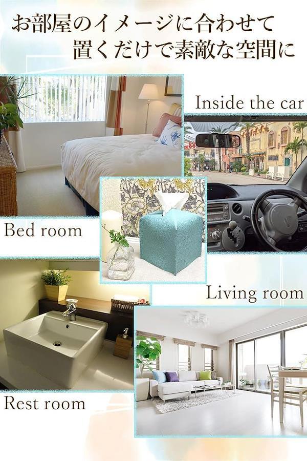 リビング、ベッドルーム、キッチン、洗面所、車の中などお部屋の雰囲気に合わせてお洒落にお使いください。
