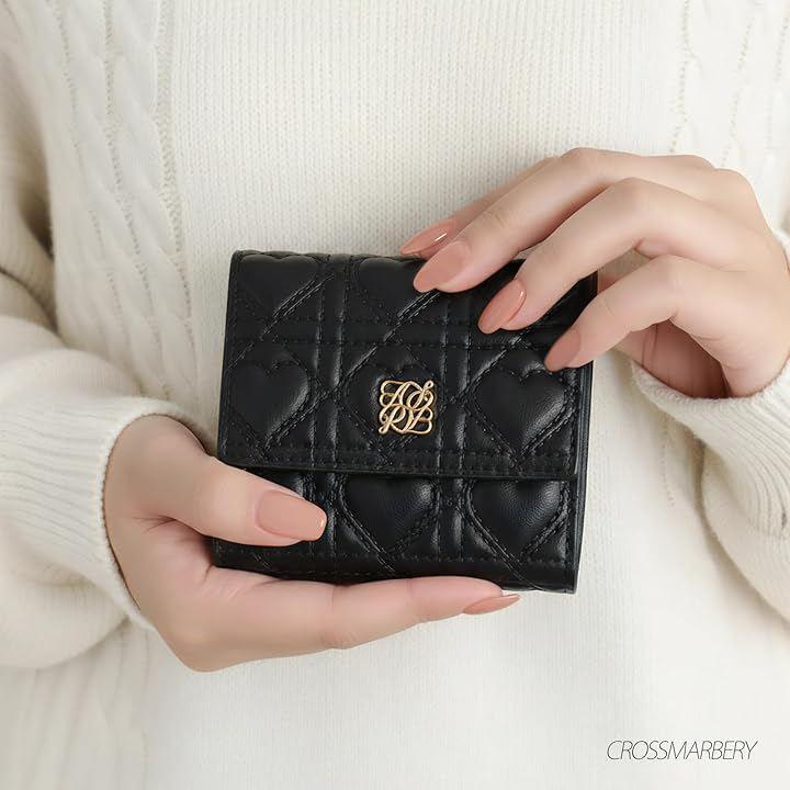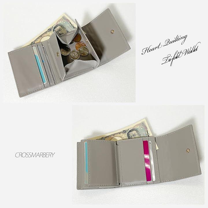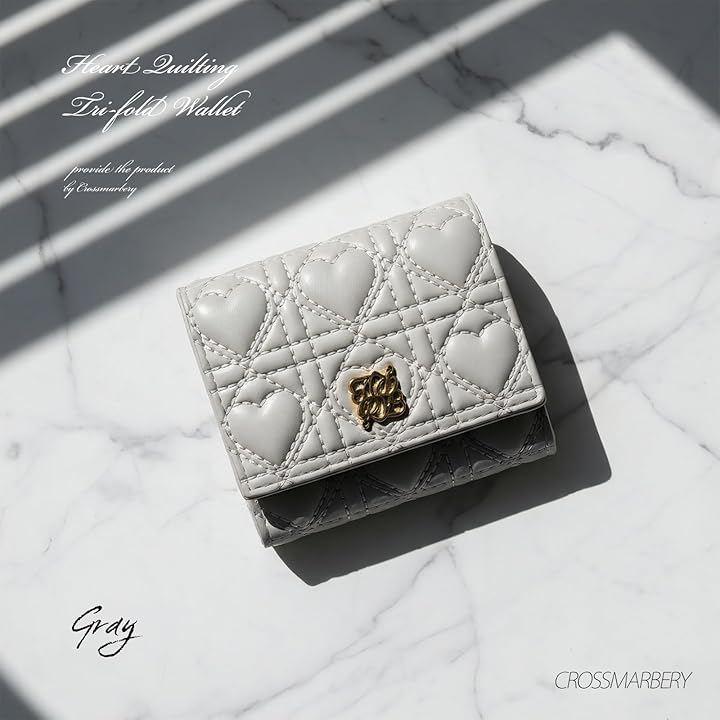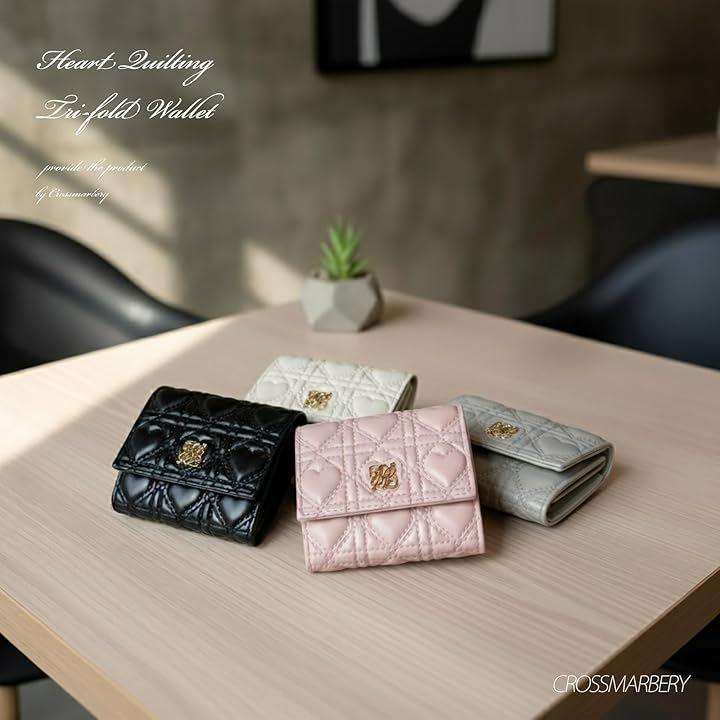 「心惹かれる、愛らしいデザイン」ぷっくりとしたハートのキルティング柄が、思わず目を引く可愛らしい三つ折り財布です。