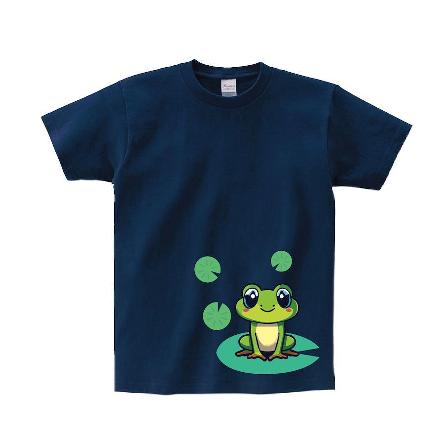 かわいい蓮の葉に乗ったかえるTシャツです。豊富なサイズでのご提供です。 ※画像ははめ込み画像となり、実際とは多少異なりますので予めご了承ください。 ※サイズ表をよくご確認の上ご購入ください。 ※受注生産となるため、返品、交換はご遠慮ください。