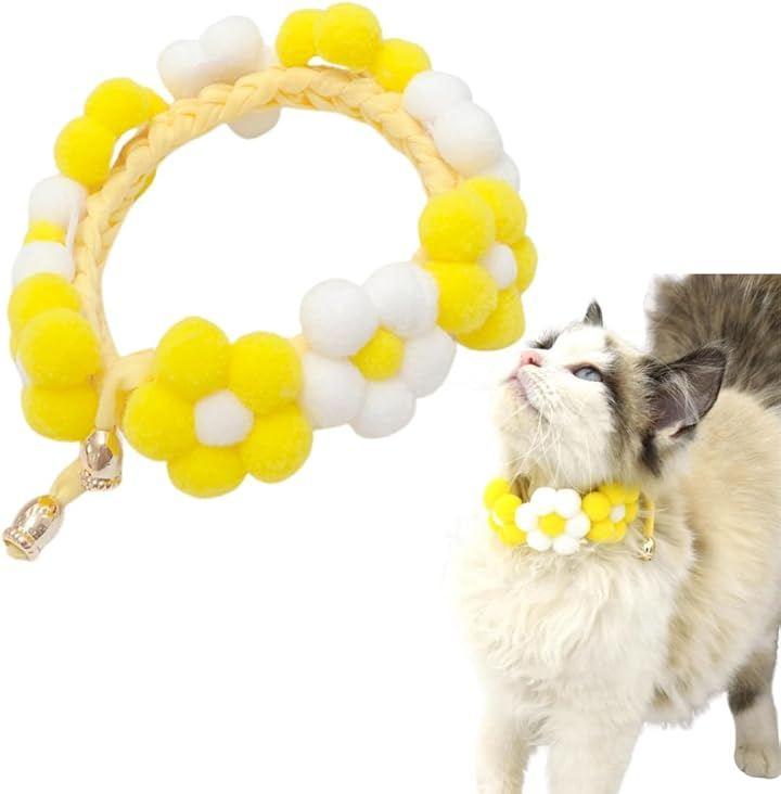 「ペットの可愛さ倍増計画」ポンポン付きの花柄首輪は、お散歩や友達との集まりでも注目の的。