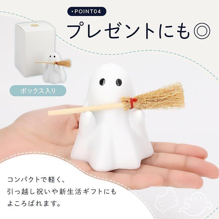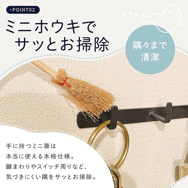 ・手に抱えたミニ箒は実際に使える本格仕様