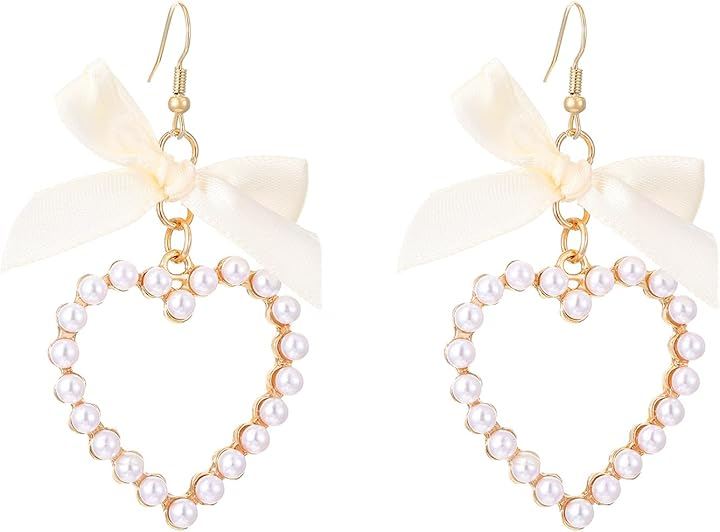 リボンモチーフが耳元を優しく彩り、動くたびに揺れるハートが女性らしさを引き立てます。