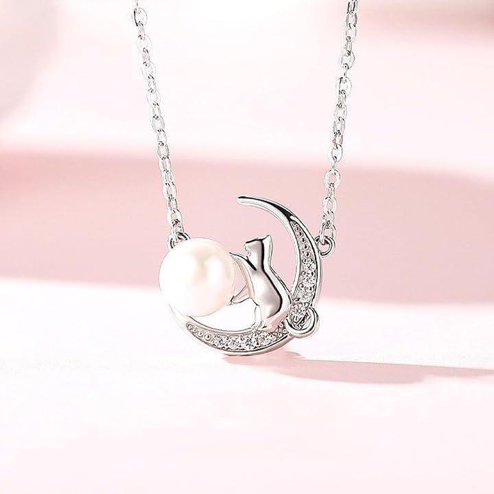 「淡水真珠を使用」淡水真珠を使用した月と猫のネックレスです。