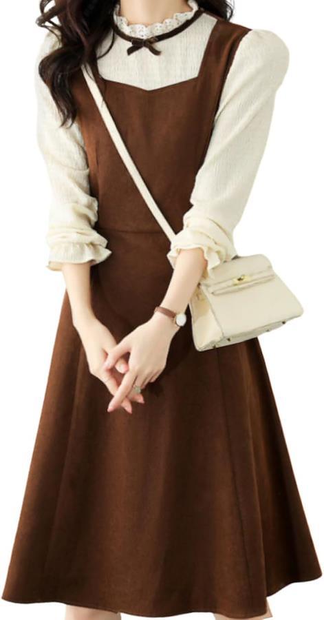 ドッキングワンピースとニットワンピの組み合わせで、季節を問わず楽しめます。