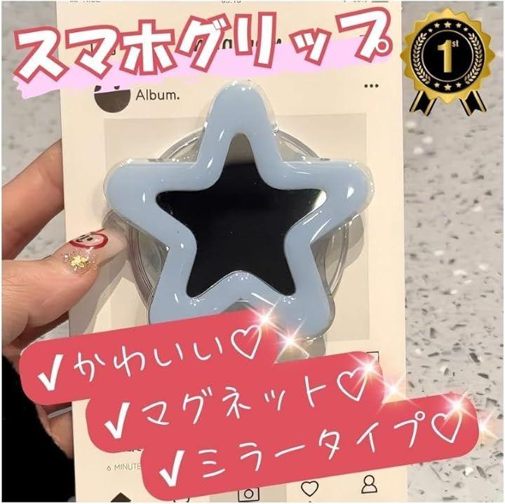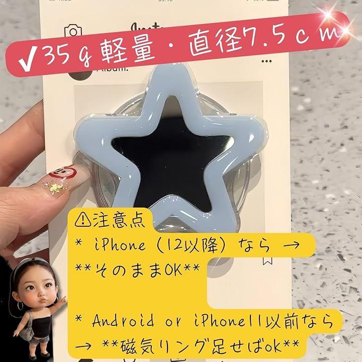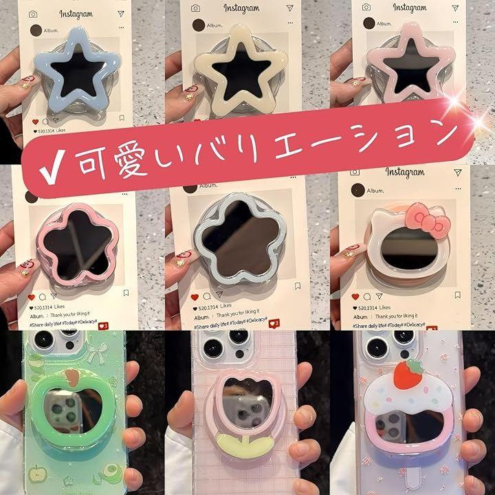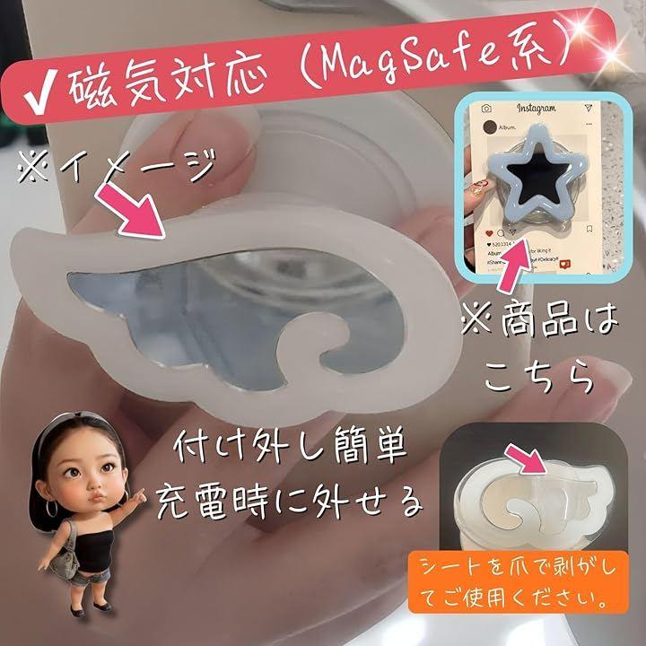 Cute MagSafe compatible smartphone grip with magnetic mirror, Korean design, stretchable