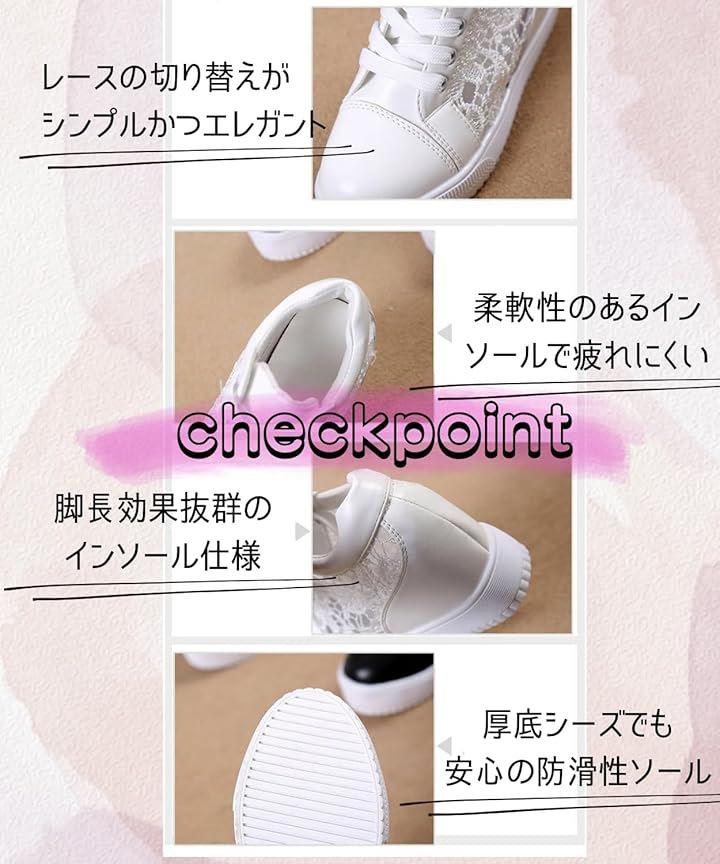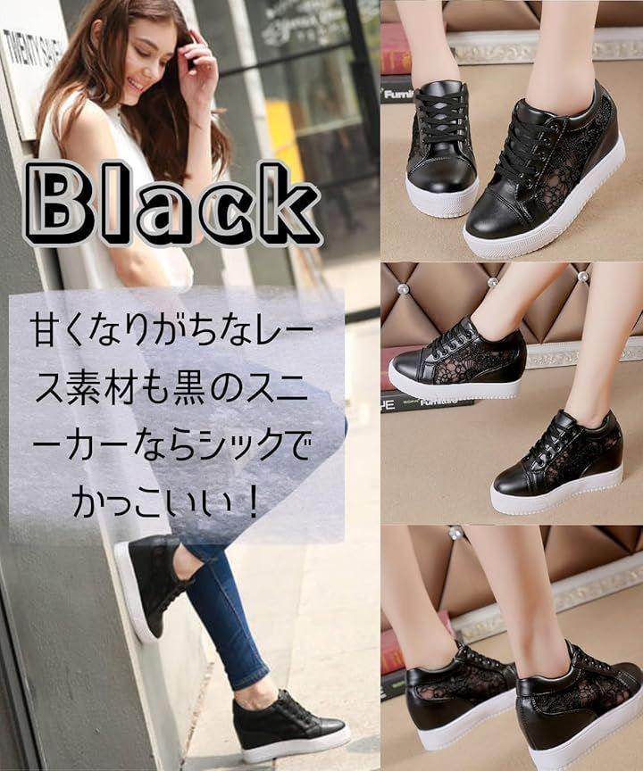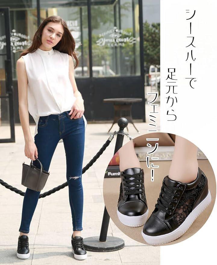 シンプルカラーのスニーカーもボリューム感のある厚底ソールと繊細なレースのシースルー素材で存在感抜群に。 厚底と4.5cmのインヒールで脚長効果も抜群。ボトムスを選ばずスタイルよく見せてくれます
