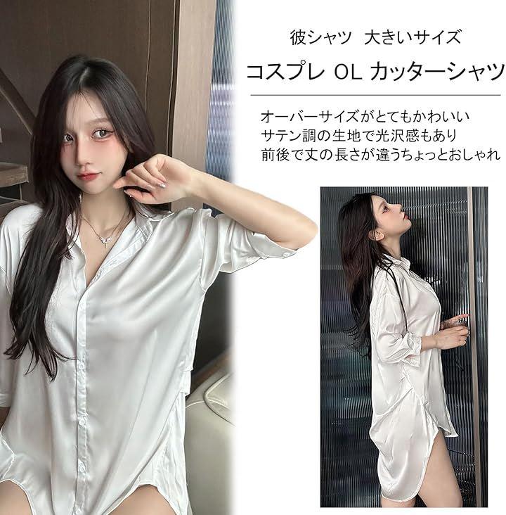 「ワイシャツ 彼シャツ 大きいサイズ かわいい コスプレ カッターシャツ サテン 透けない」をお探しの方へ。