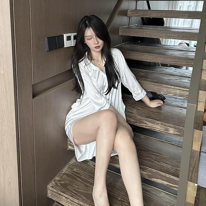 コスプレの可能性を広げるスタイリング。 このサテン調のYシャツは、清楚な学生風から、小悪魔的な秘書、はたまた大胆なセクシーナイトまで、合わせる小物やメイク次第でどんなキャラクターにもなりきれます。